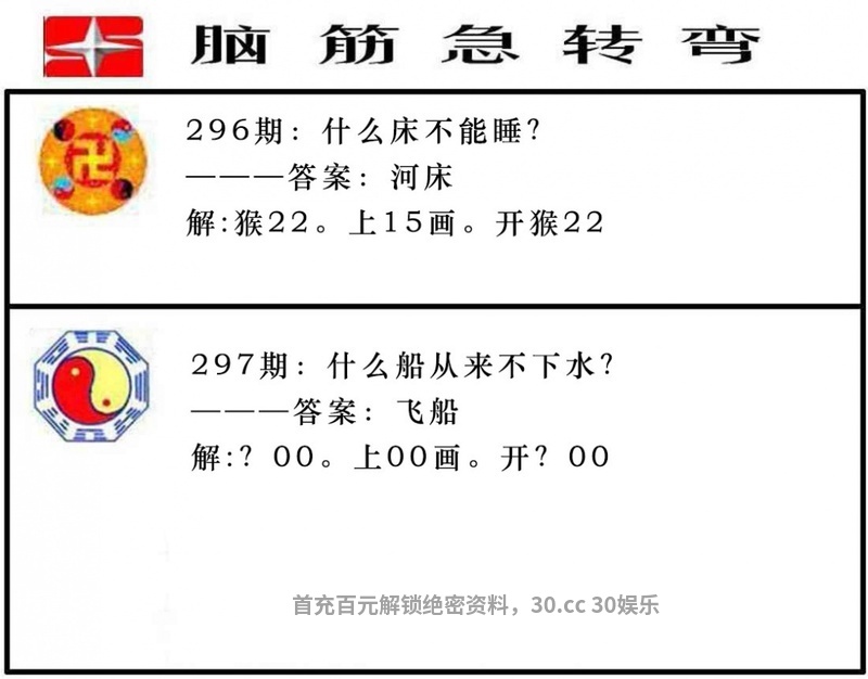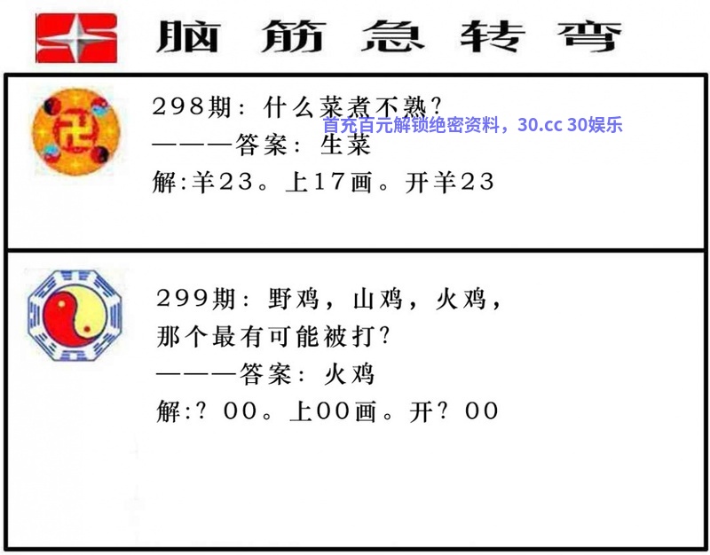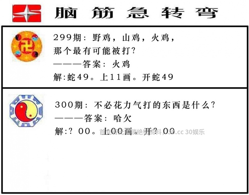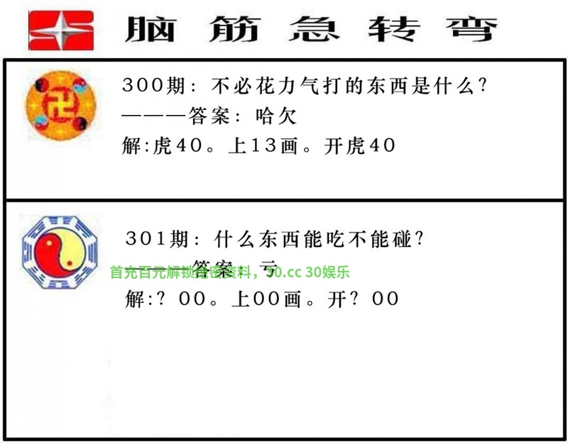 302期:猜字谜/有一说一诗/包不同送特/黄大仙欲钱料/最老版开门